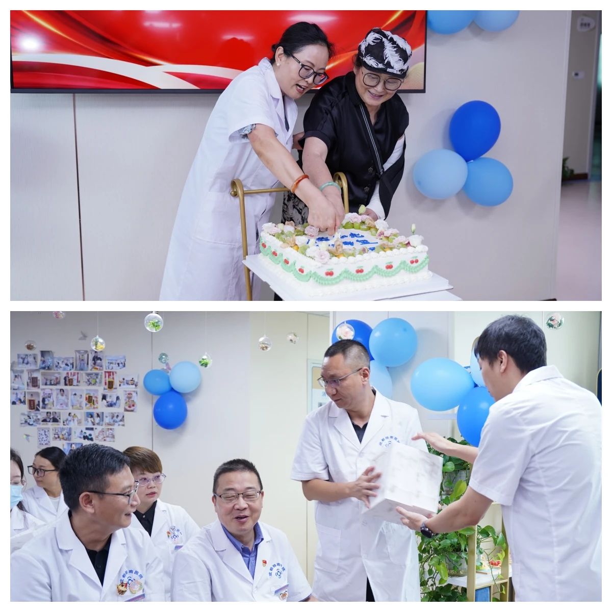 为感谢医师们的辛勤付出,医院精心准备了医师节礼品,在活动现场逐一发放。一份份饱含心意的礼物,传递着医院对医师团队的关怀与敬意。随后,伴随着欢快的音乐,大家一同切开象征团圆与喜悦的节日蛋糕,在分享甜蜜的同时,也感受到了棕南大家庭的温暖与凝聚力。